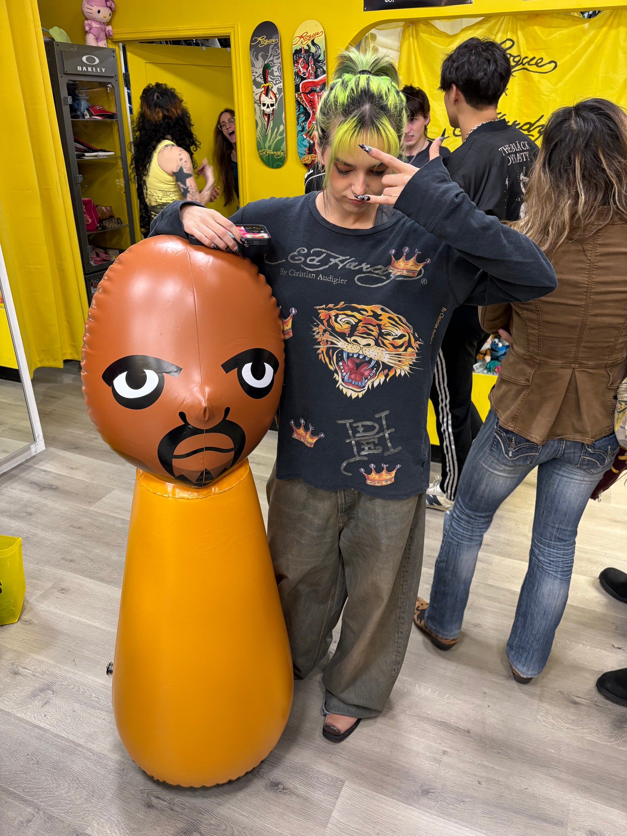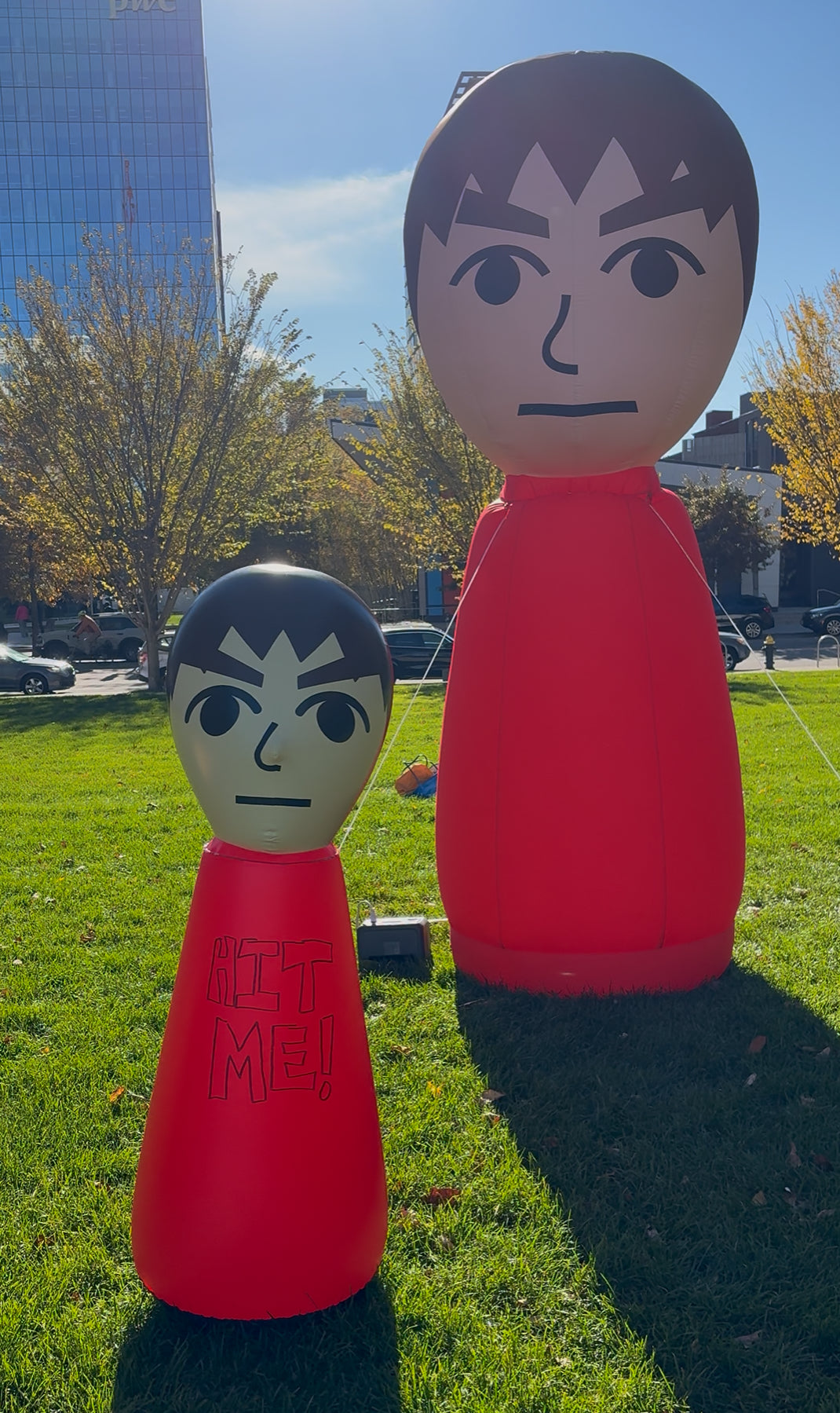 Standing at four feet five inches tall, each Punch Doll comes with a hand pump for easy inflation. Made from heavy-duty plastic built for everyday use, it’s designed for normal punches only.